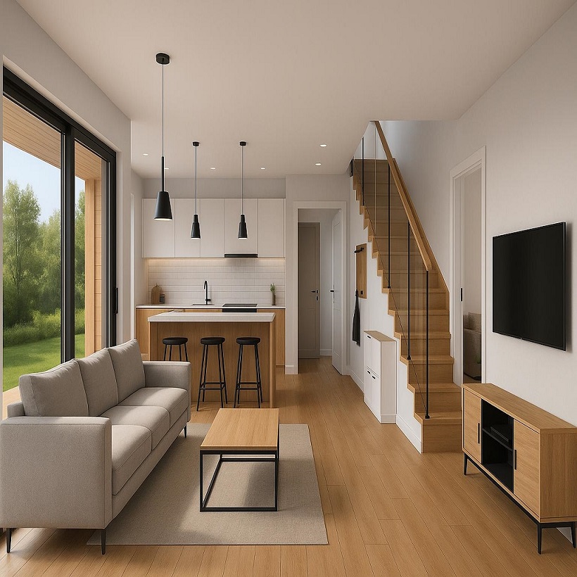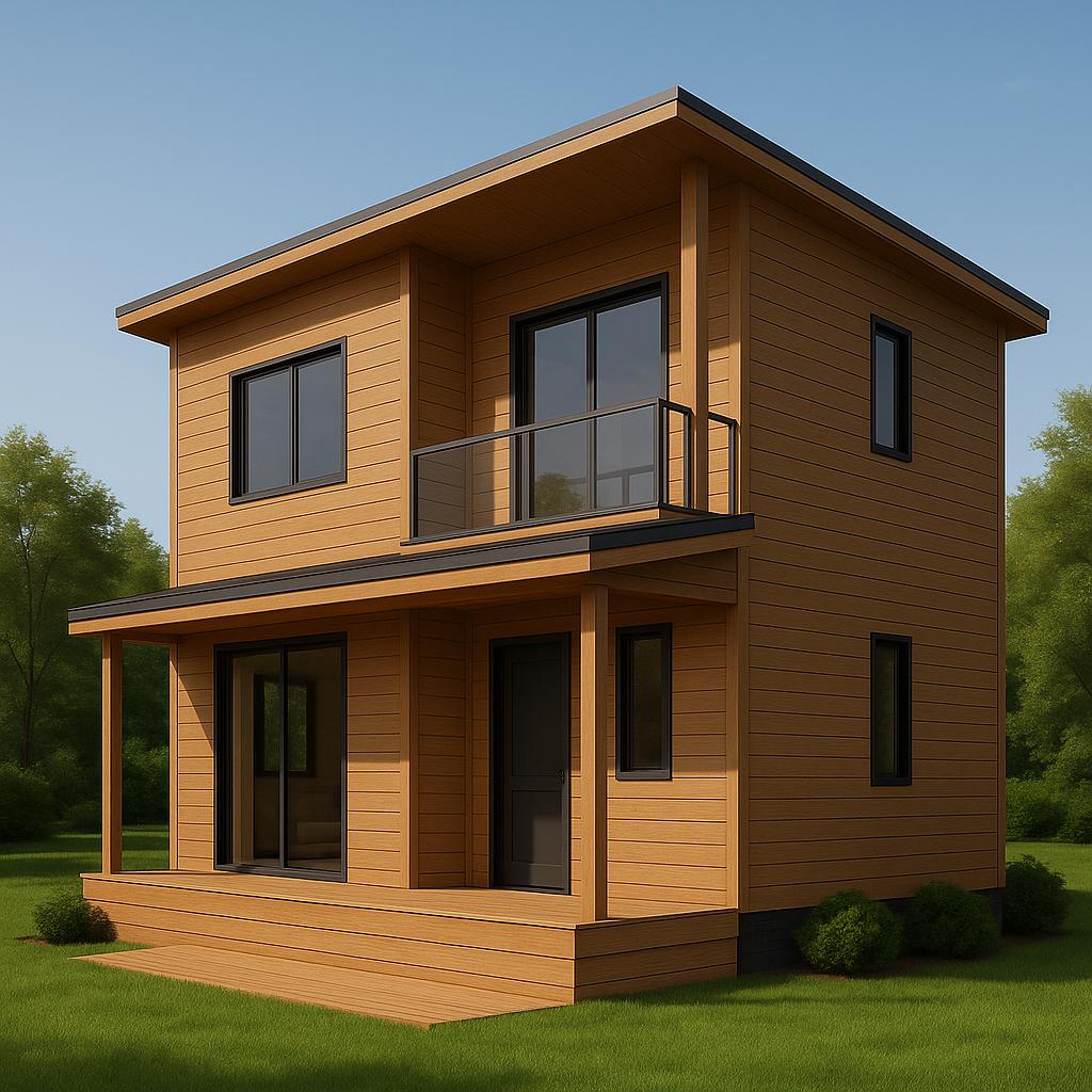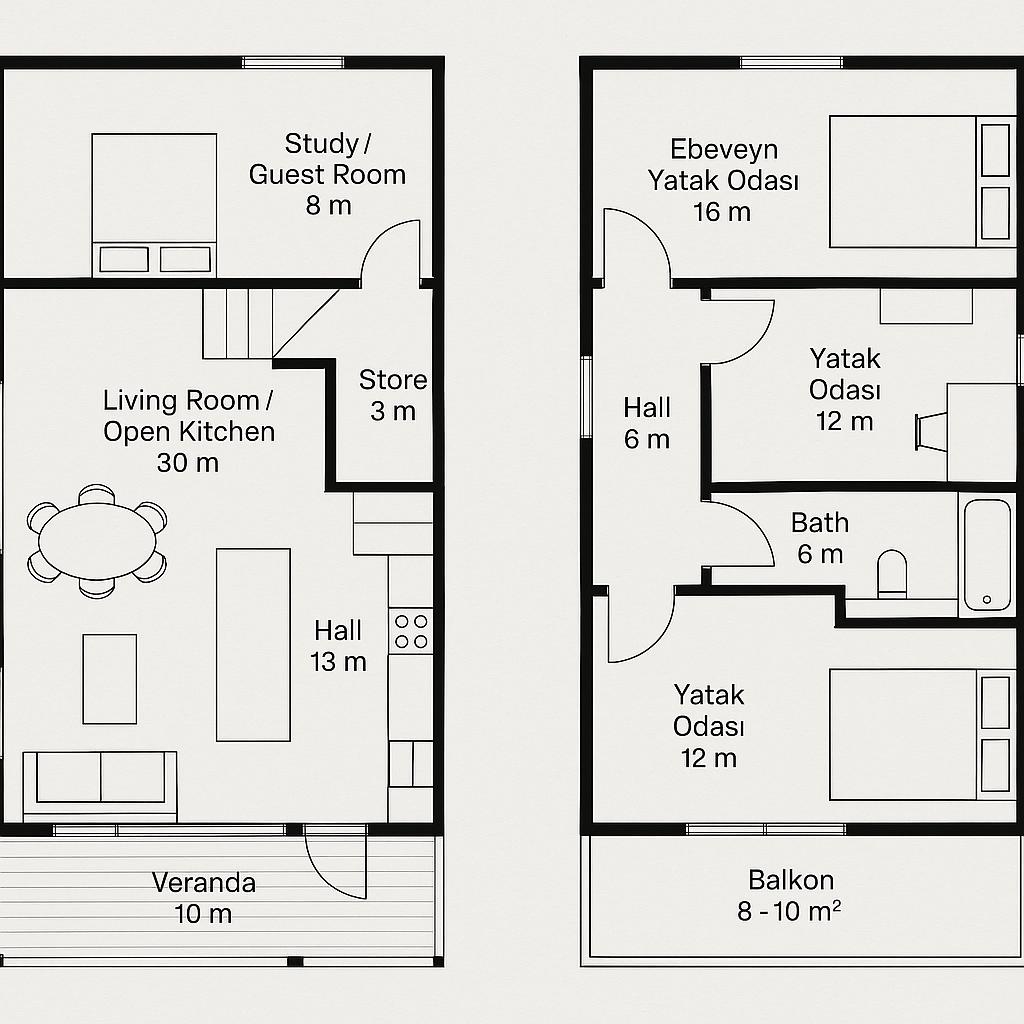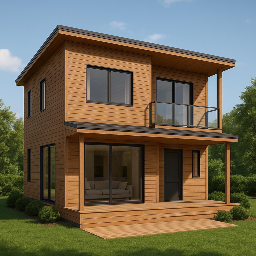 2 katlı 120 m2 modern ahşap villamız dört mevsim konforlu ve enerji verimli bir yaşam sunar.